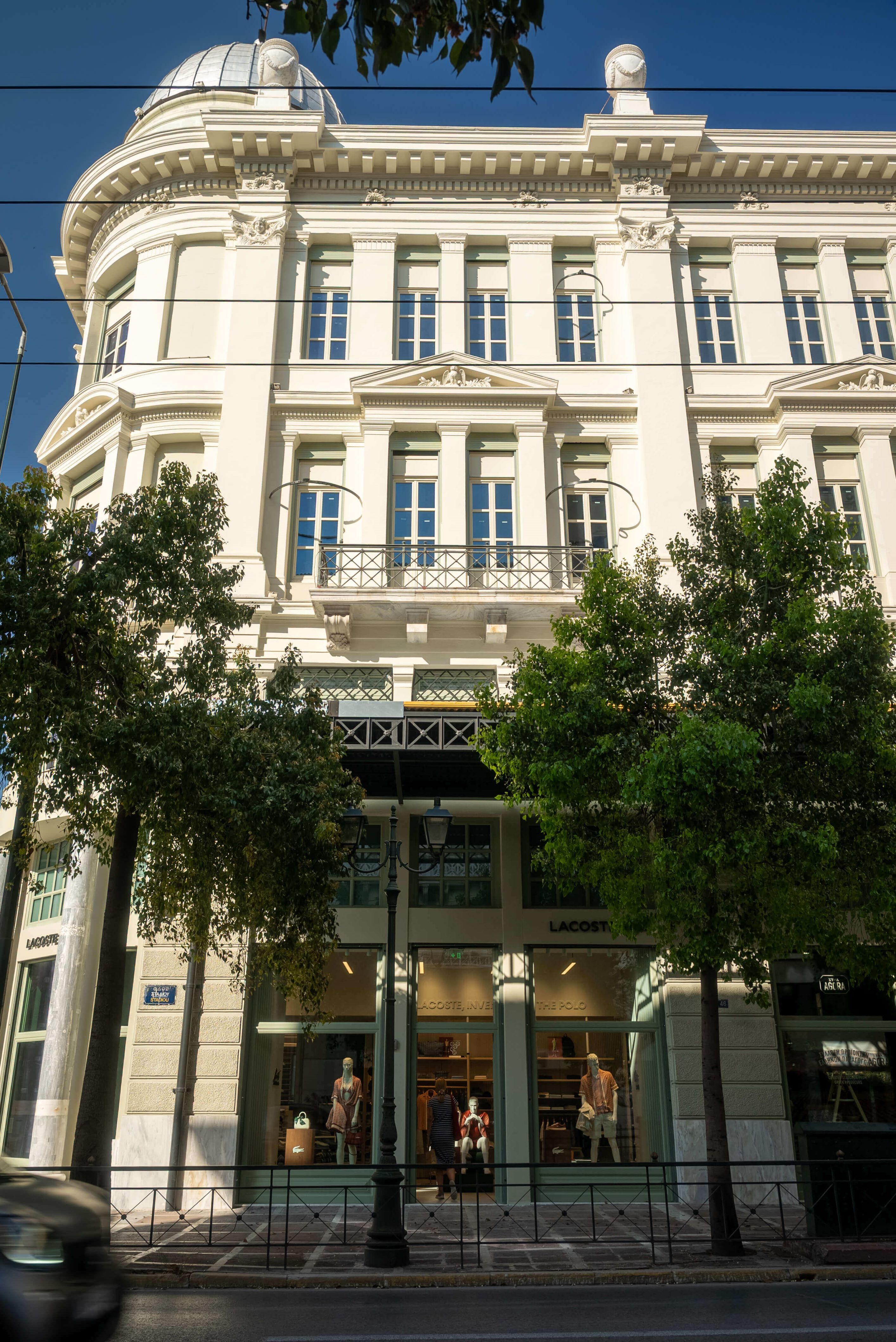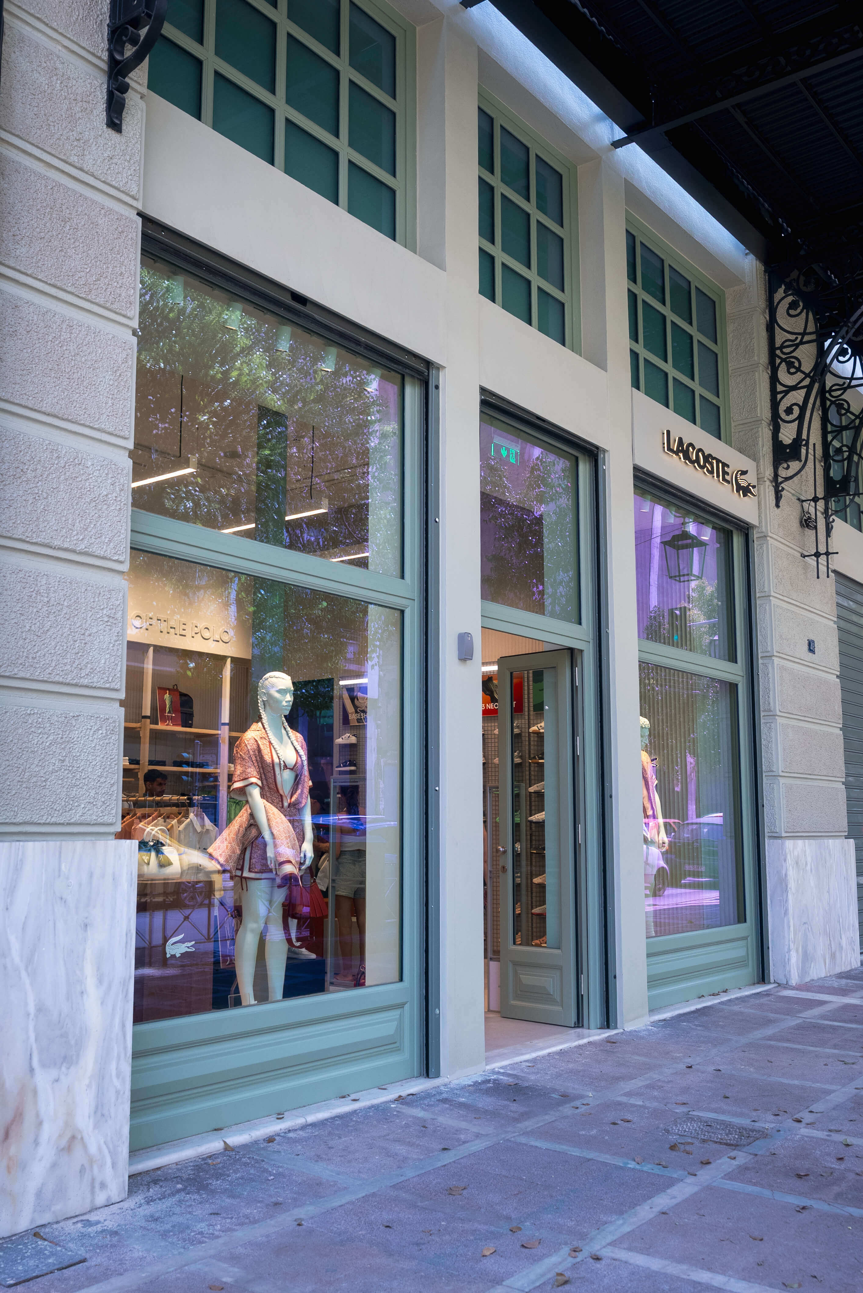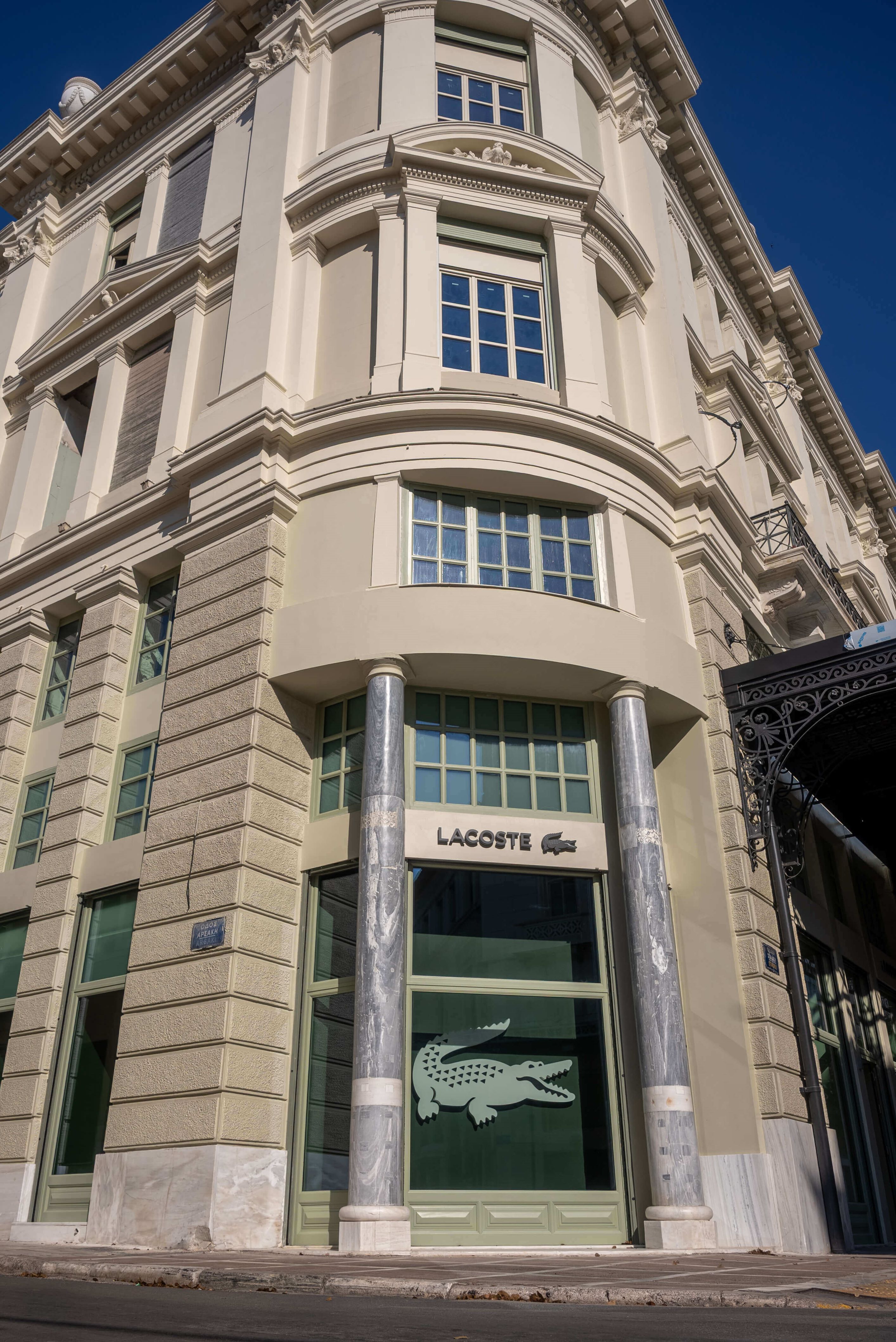 Απολαύστε μια συναρπαστική εμπειρία στο νέο κατάστημα στο κέντρο της Αθήνας. Σε αρμονία με την αρχιτεκτονική κληρονομιά της Αθήνας το νέο κατάστημα σχεδιάστηκε για να γιορτάσει και να αναδείξει τη πλούσια κληρονομιά της Lacoste – τόσο αισθητικά όσο και τεχνικά μέσω της εφευρετικής κληρονομιάς του Rene Lacoste. Η πρόσοψη του καταστήματος αντανακλά τον παλμό της πόλης στα χρώματα της Lacoste και αποτυπώνει τον αντίκτυπο της μάρκας στην Ελλάδα.